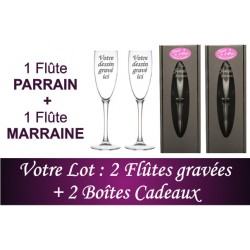 1 Flûte pour PARRAIN + 1 Flûte pour MARRAINE avec 2 Boîtes Cadeau.
