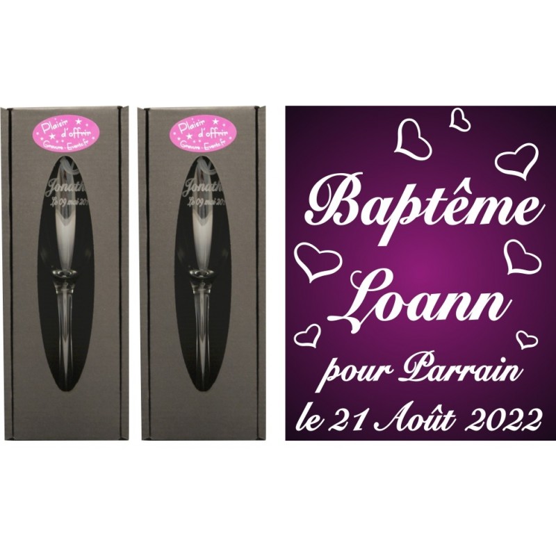 2 Flûtes Mod. Envolée De Cœurs (Baptême) + 2 Boites Cadeaux