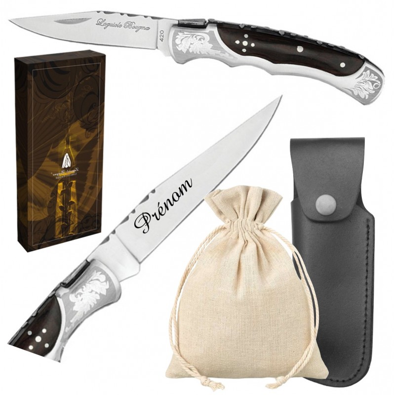 Couteau Laguiole Bougna TAILLE L - Couleur Marron ( ref.28B ) ~P.Plat~